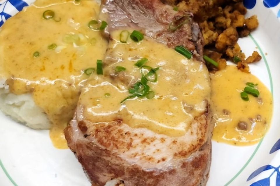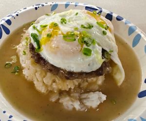 Loco Moco made with fried pork belly