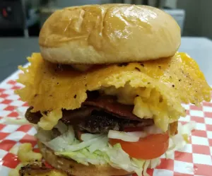 1/3 lb beef, American cheese & garlic mayo on artisan roll. Add bacon and sub mac & cheese for an additional charge.