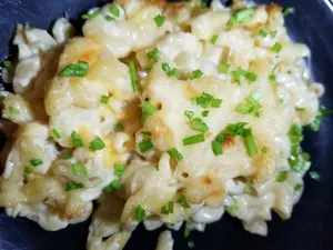 Scratch made mac & cheese baked to order.