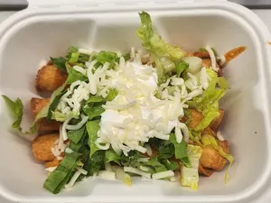 6 corn tortillas filled with potato & cheese, rolled & deep fried. Topped with lettuce, sour cream & cheese.
