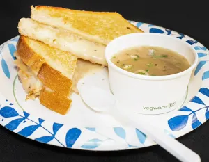 Sourdough grilled cheese made with caramelized onions, provolone & swiss cheeses. Served with onion soup broth for dipping.
